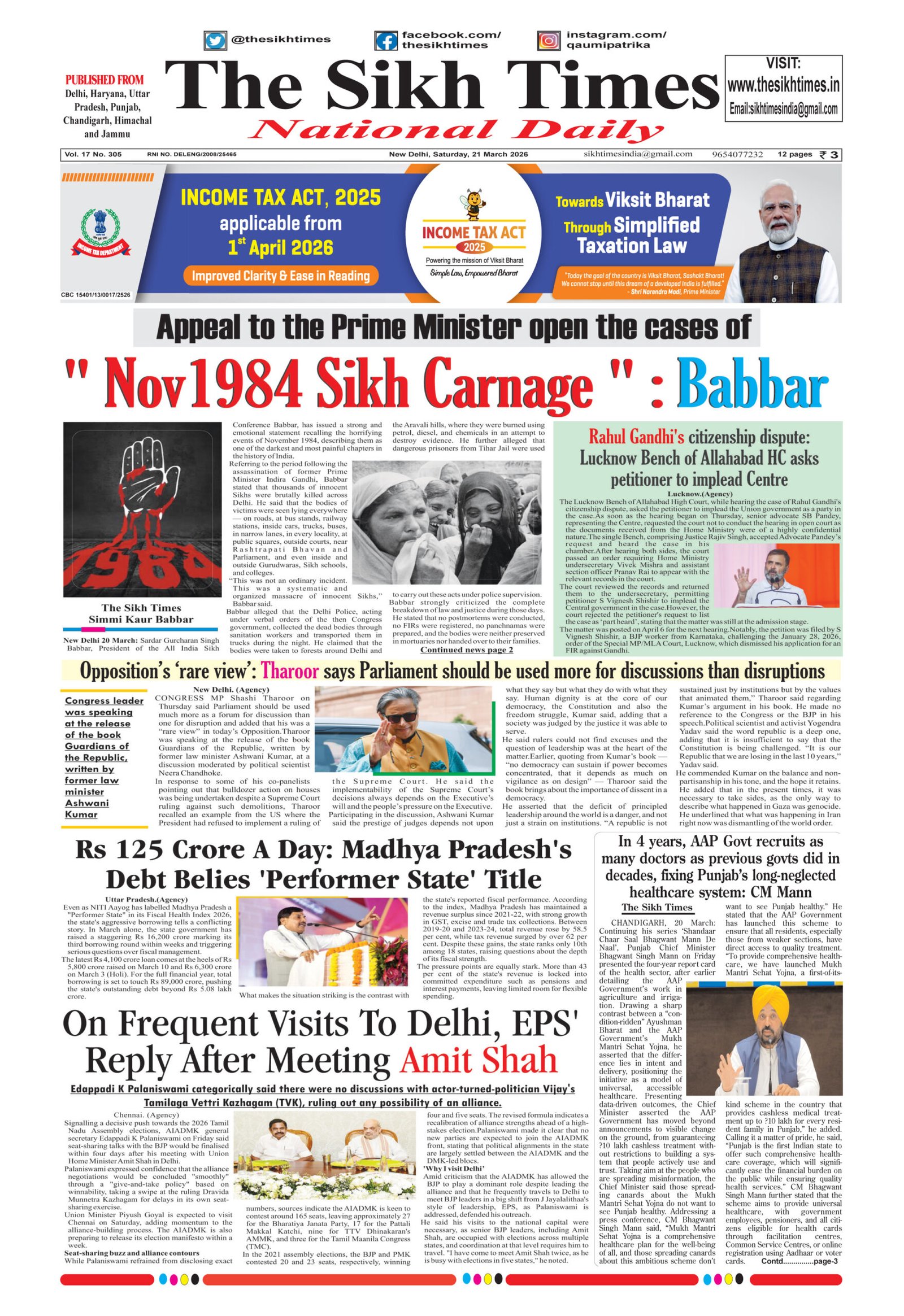 The Sikh Times, 21 March 2026