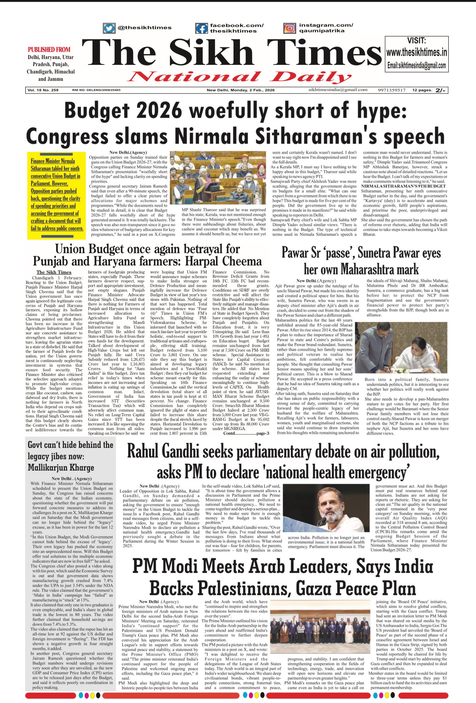 The Sikh Times , Monday, 2nd February 2026
