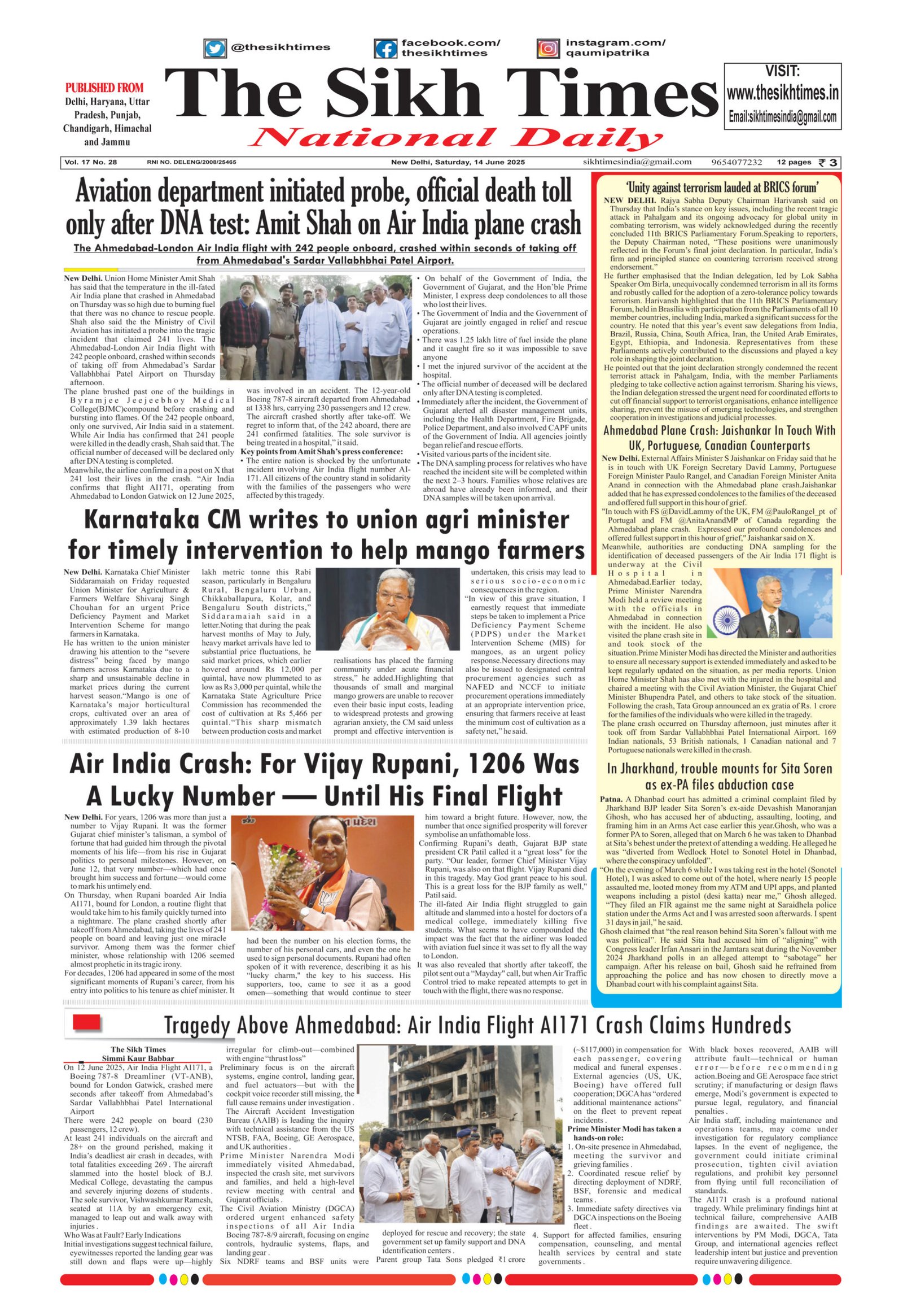 The Sikh Times , Saturday, 14th June 2025