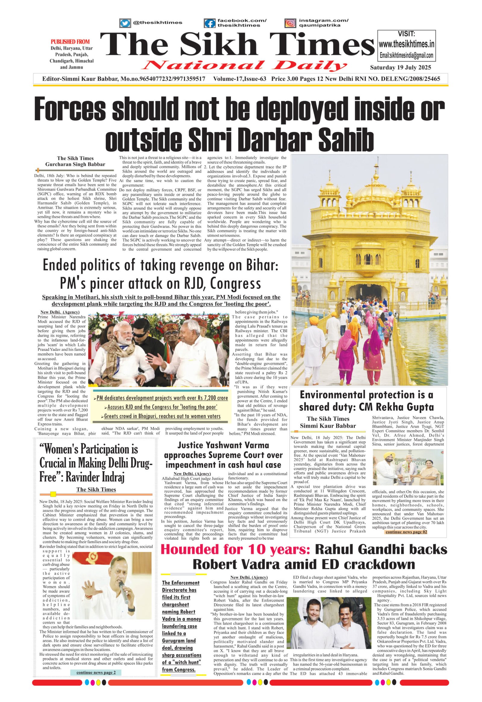 The Sikh Times , Saturday, 19th July 2025