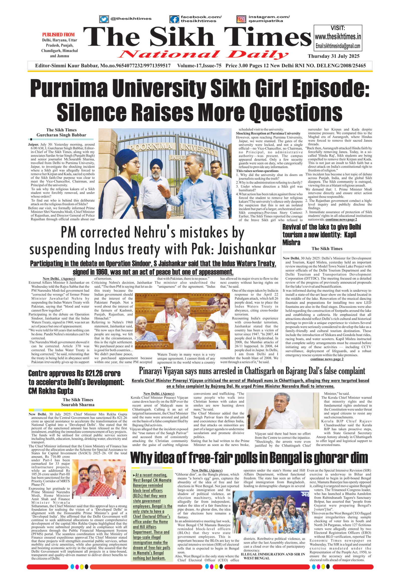 The Sikh Times , Thursday, 31st July 2025