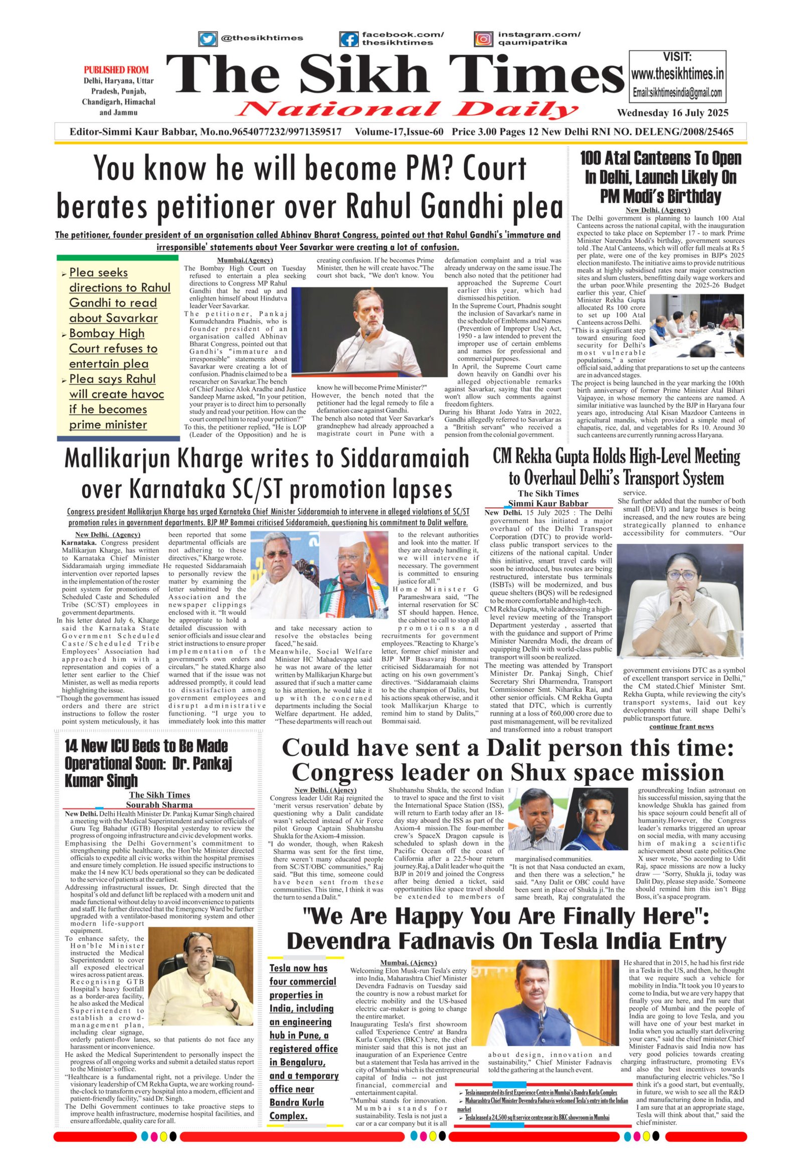 The Sikh Times , Wednesday, 16th July 2025