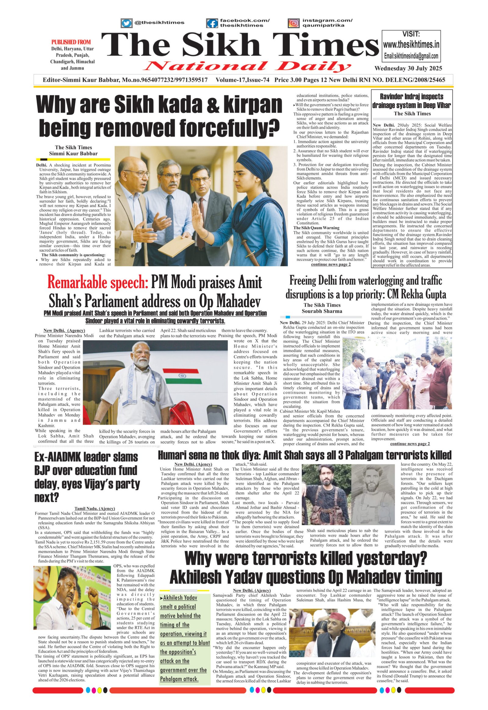 The Sikh Times , Wednesday, 30th July 2025